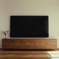 Zde byli požadavky jasné. Vše z dubu a bez železa, čisté a jasné linie. Součástí byl stůl o rozměrech 220 x 90 cm. Nohy také ze dřeva (10x10 cm). Ošetřeno olejem Rubio Monocoat. Komoda pod televizi, bez úchytek o rozměrech 230 x 50 cm. Parapety do všech místností - s nosem s přesahem.
